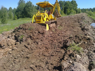 ДЛЯ проведения различных работ. Очень манёвренный в стеснённых местах. Бульдозер оборудован болотными гусеницами, тем самым увеличивает проходимость на нетвёрдых почвах.